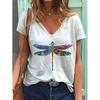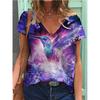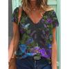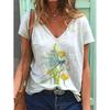 New 3D Printed Short Sleeved Women's Summer Casual Flower and Bird Print V-neck T-shirt
