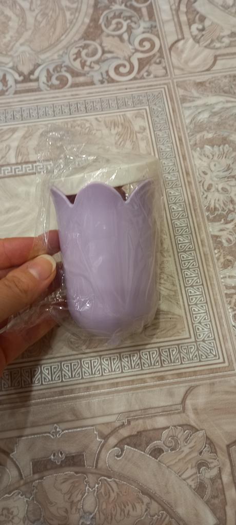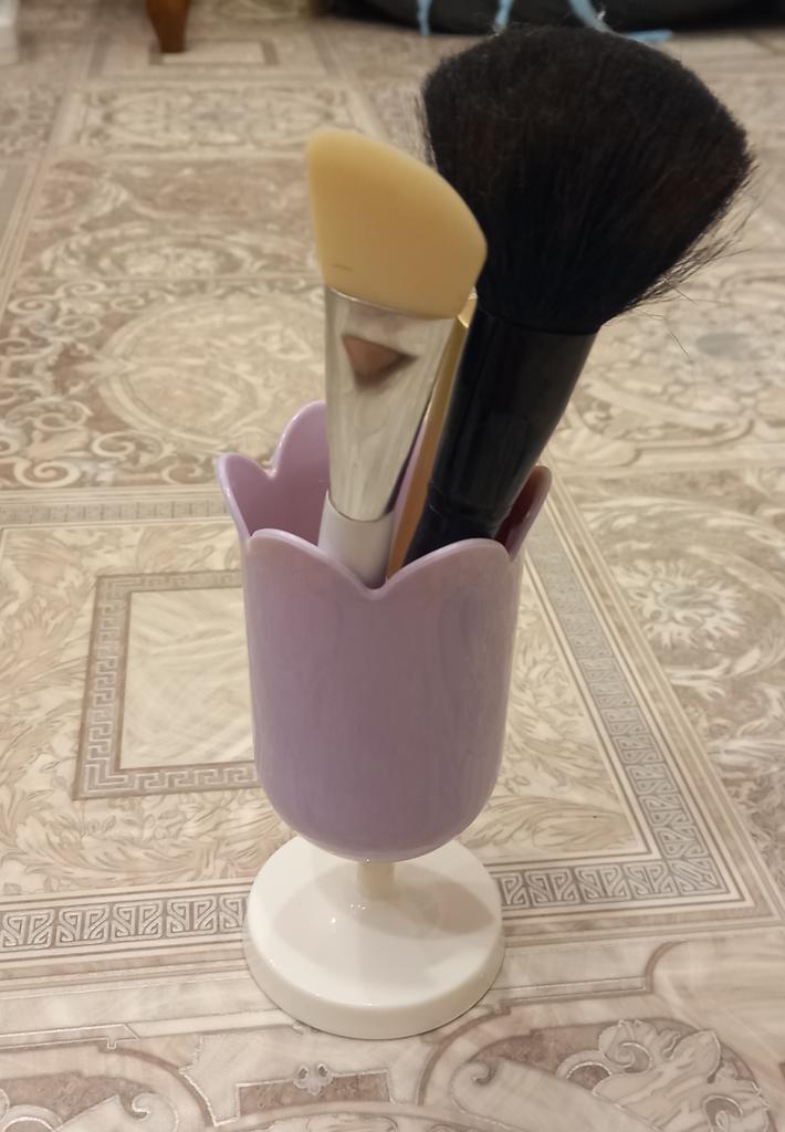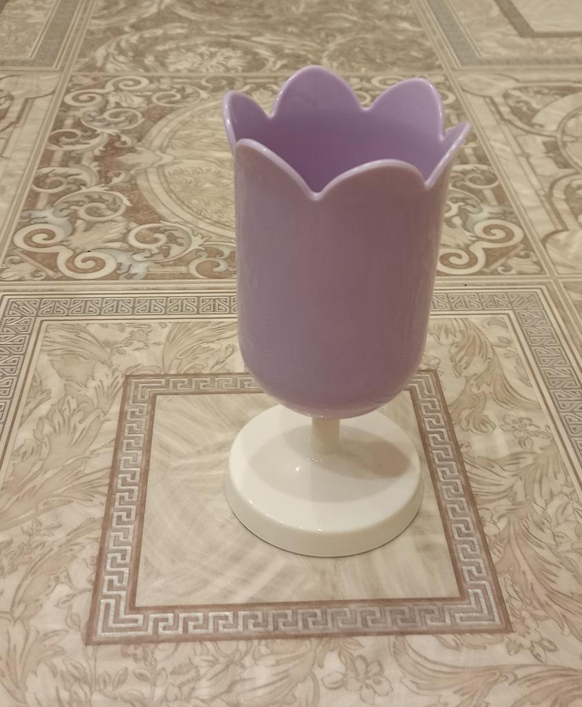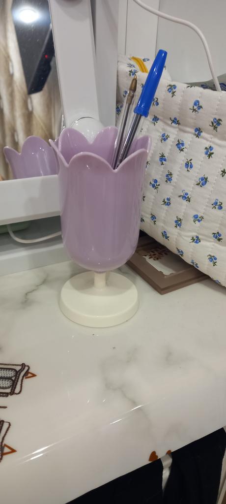 Super little glass, in the shape of a tulip, can be used for stationery or brushes.