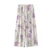 Women's Pajama Bottoms Floral Print Cuff Pants Wide Leg Pj Pants Elastic Waist Sleep Pants Loungewear Nightwear