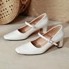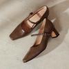 Mary Jane High Heels Thick Heel New Large Size Women's Shoes Black Temperament Square Head Light Mouth Single Shoes