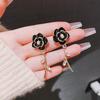 S925 Silver Needle Camellia Zircon Leaf Earrings - Trendy French Design for Women