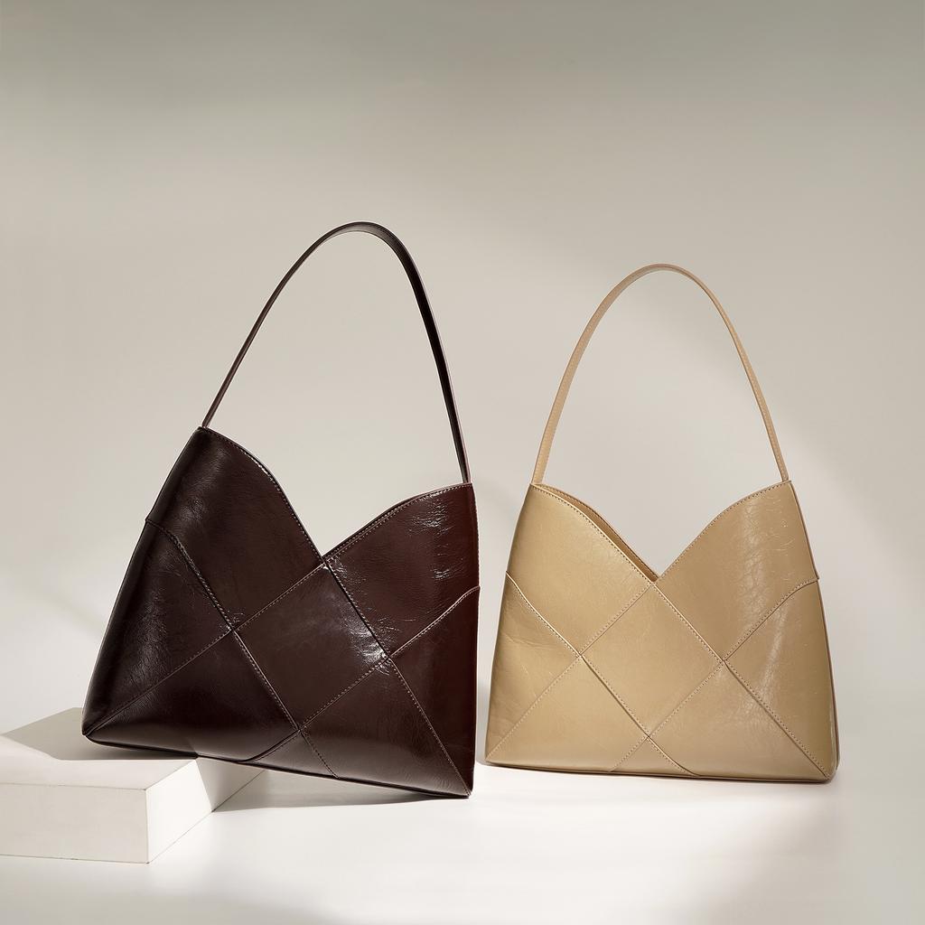 Unique geometric shape, premium cowhide leather, and multi - pocket organization for stylish, practical daily use.
