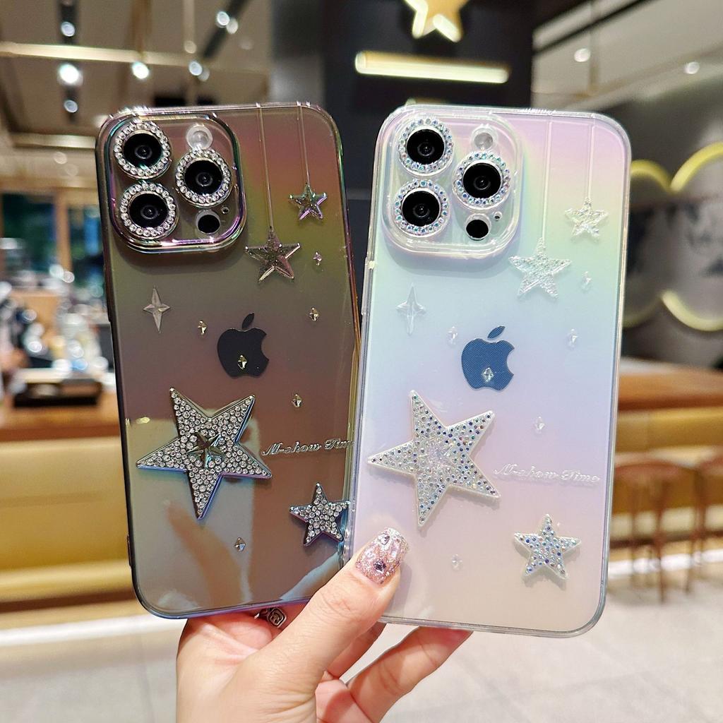 Suitable for Iphone15 Phone Cases with Diamond-encrusted Lenses and Apple 14promax Color-plated Semi-transparent Protective Cases