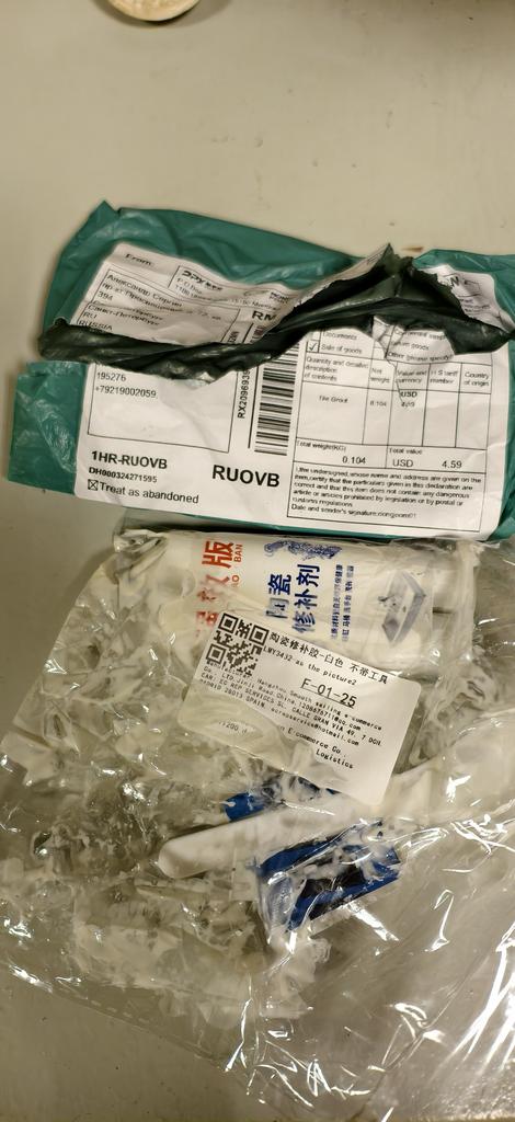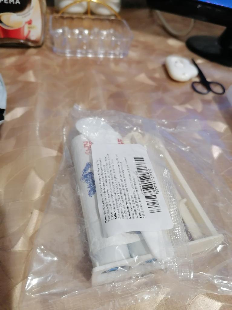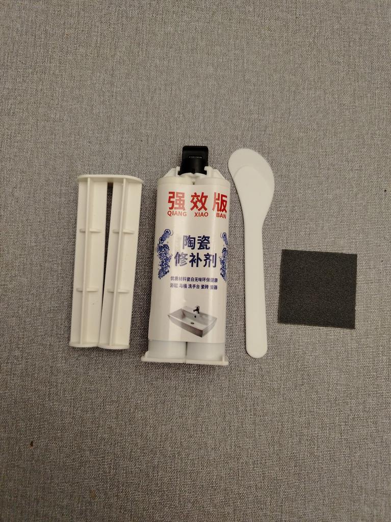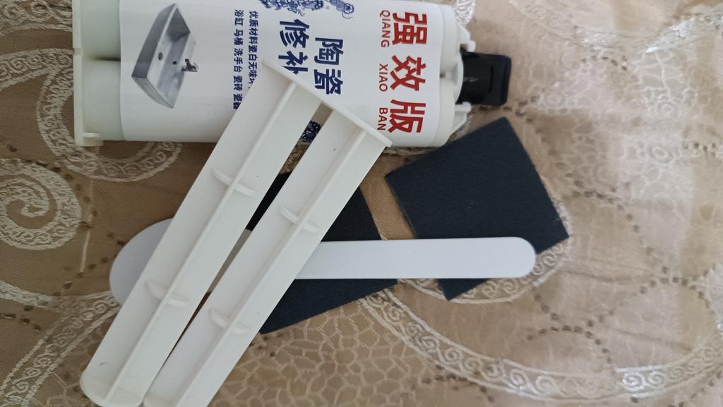 The glue arrived, there are no instructions. Glue, Spatula, sandpaper and two more plastic things it is not clear for what. Maybe a clamp. I haven't tried the glue, I remove a star because of the instructions.