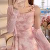 Summer New Slash Neck Sling Elegant Sleeveless Dress Women Butterfly Lovely Maxi Dress Solid Color Screw Thread Cardigan