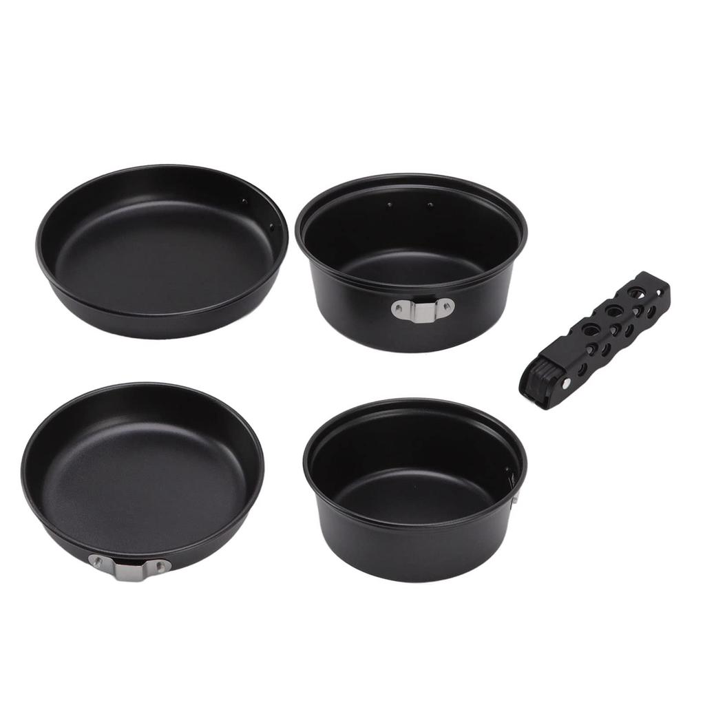 Open Fire Cookware Black Stackable Camping Pot Prevent Sticking Aluminum Alloy BBQ