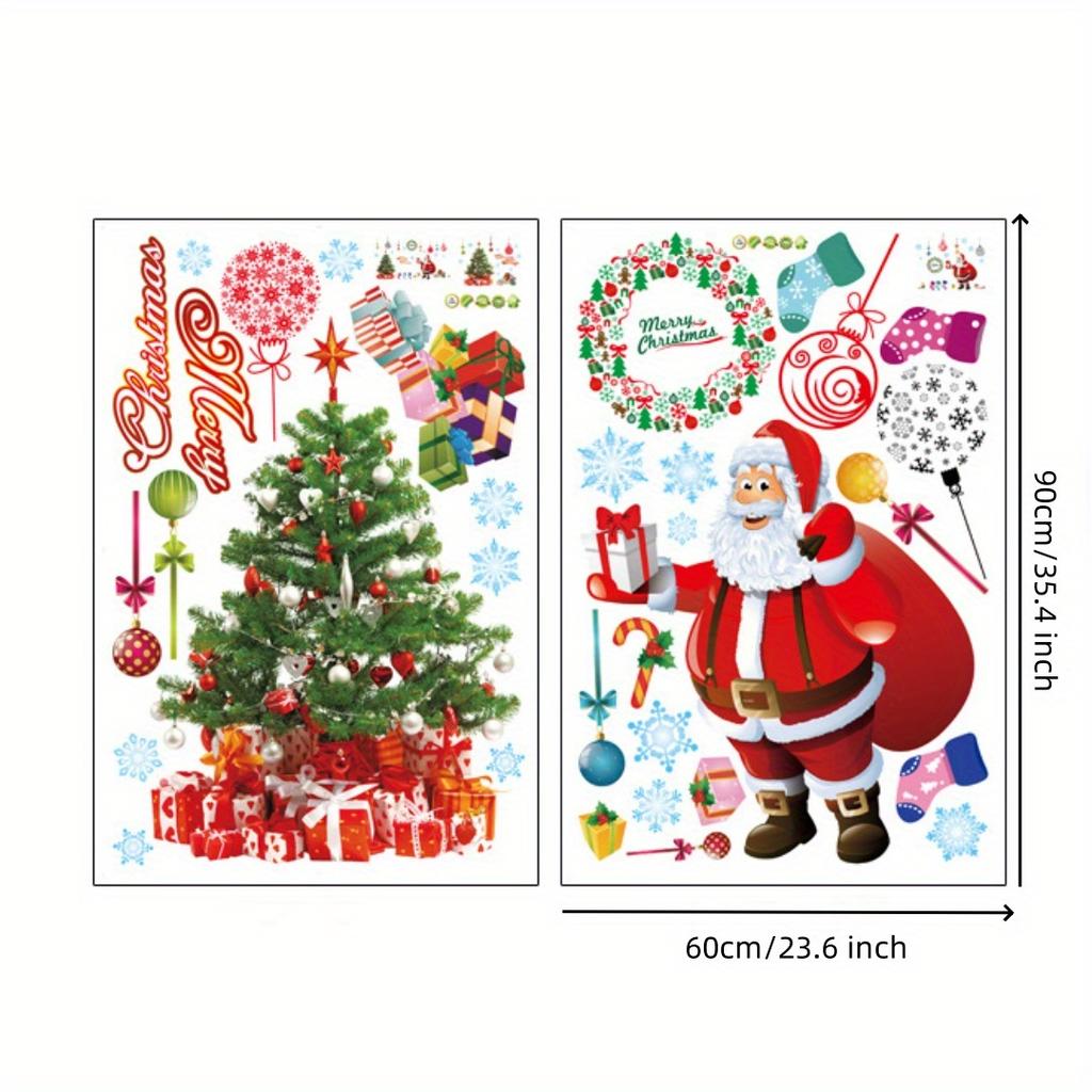 Christmas Window Static Decal, Adhesive, Removable, Vinyl, Santa Claus Christmas Tree Snowman Snowflake Deer DIY