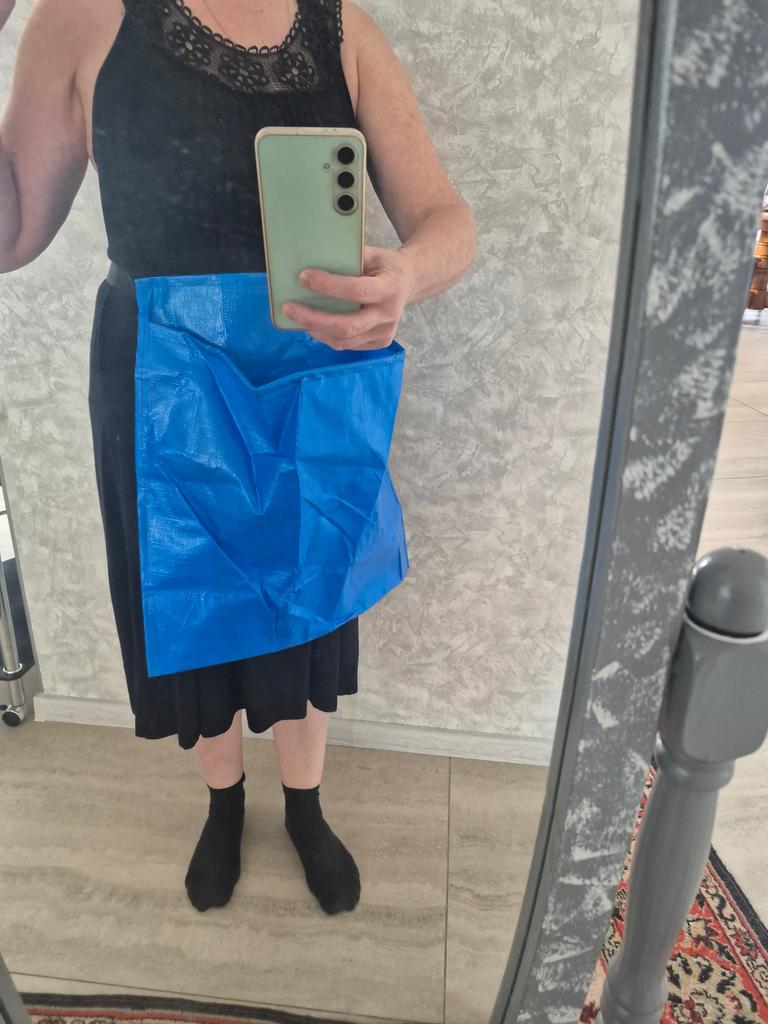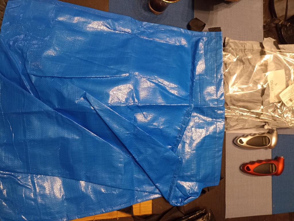 Apron made from material for making bags, coarse, very large