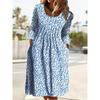 YYFS Women's Fashion Spring Fall Flower Pattern Print Long Sleeve U-Neck Loose Waistline Casual Dresses