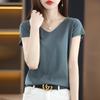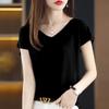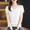 2023 Women's Ice Silk V-neck Summer Top: Short Sleeve T-shirt & Sleeveless Knitted Vest