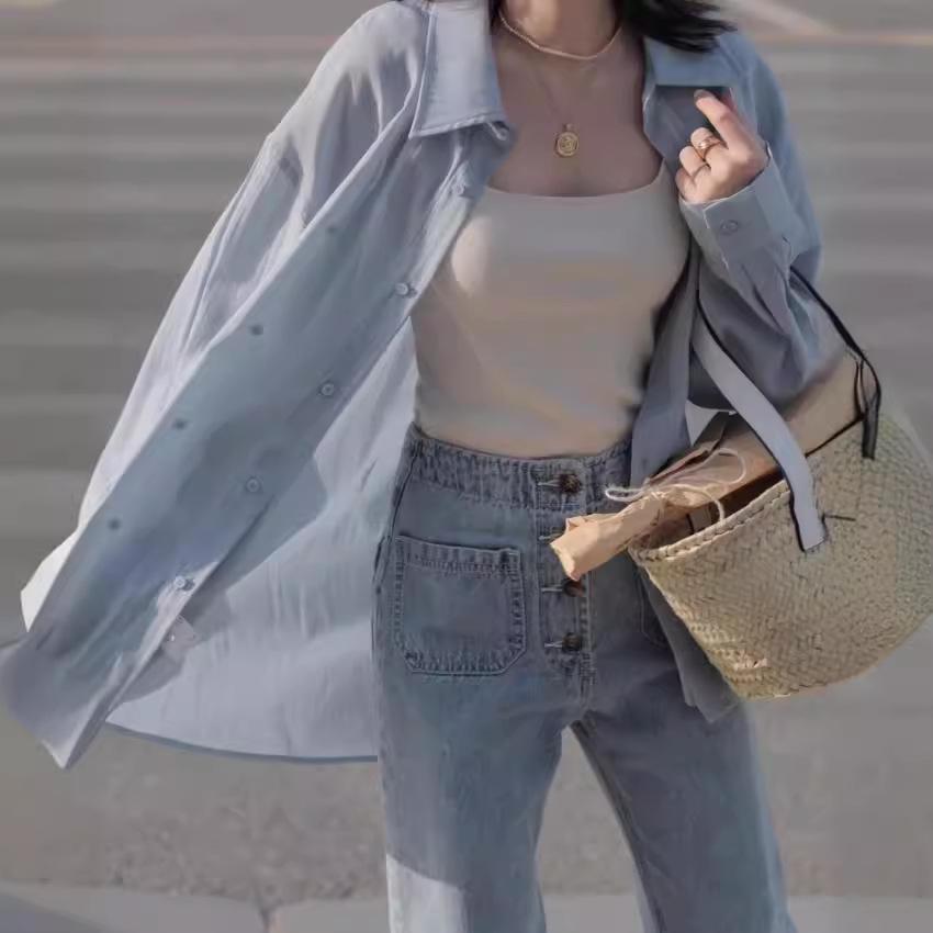 Early Spring Women's French Blue Sheer Sun Protection Shirt