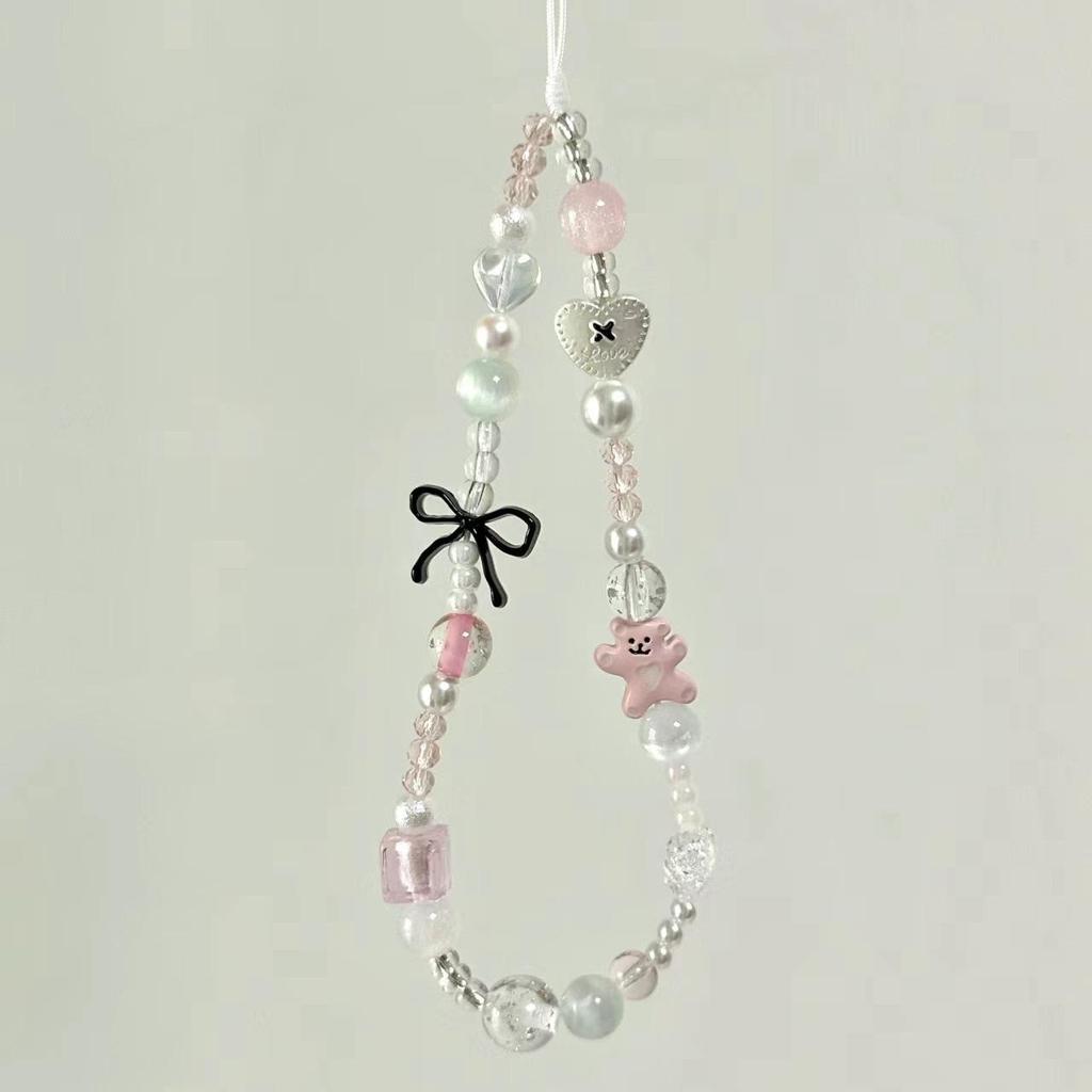 Black Bow Bear Beaded Phone Chain & Camera Lanyard Keychain Combo