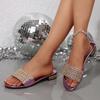 Ladies' Rhinestone Embellished Sandals - Open Summer Slippers, Casual and Formal Occasions, Fashionable Design Synthetic Leather Shoes