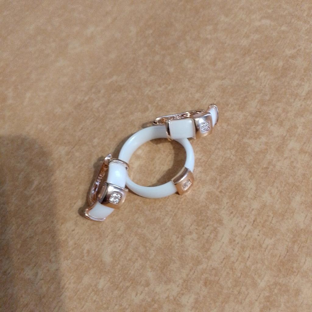 Unique Curved White Ceramic Women Golden Earrings White Zircon Glossy Square Personality Jewelry Match Rings
