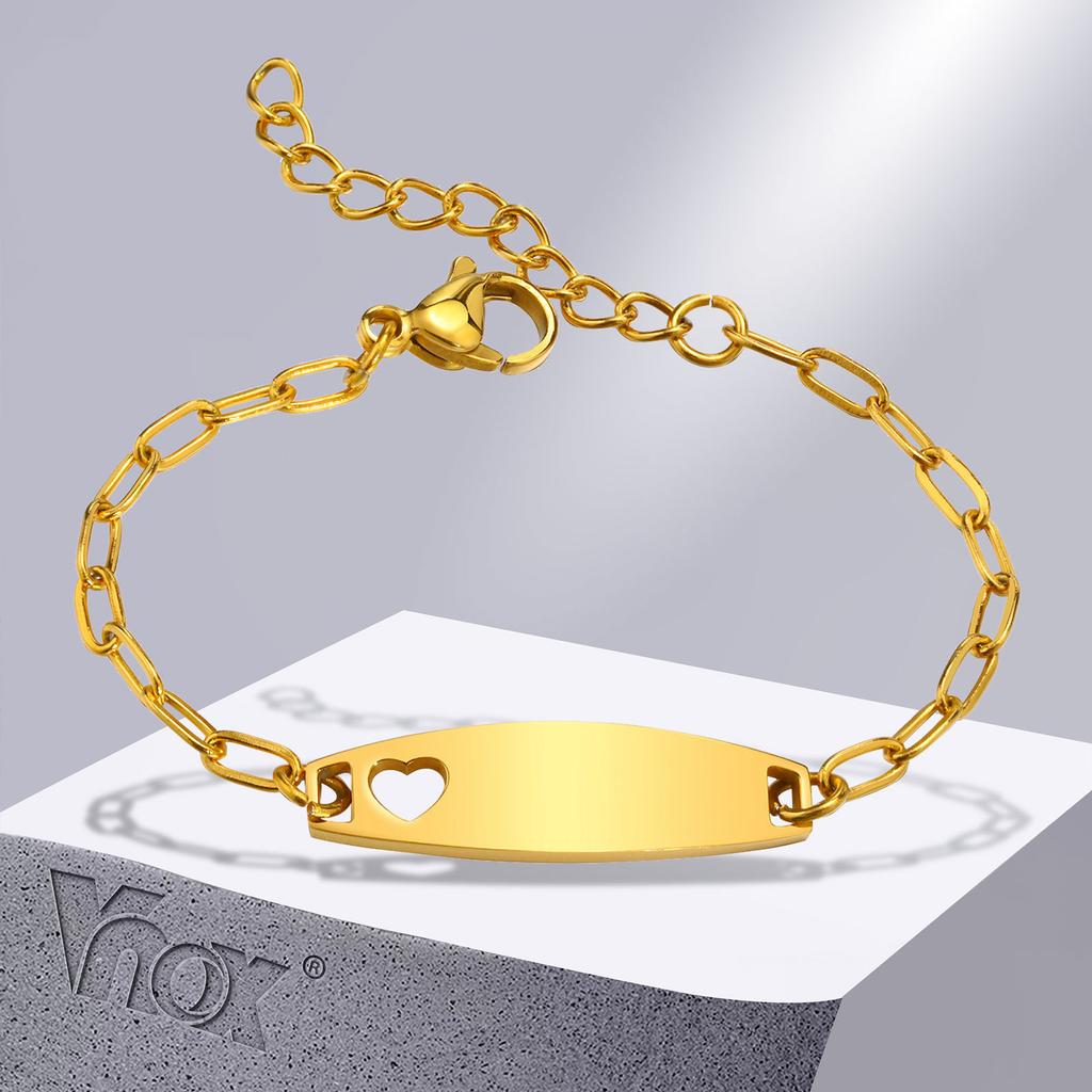 Vnox Free Engraving Name Bracelets for Girls Boys, Custom Date Name Bangles, Meaningful Gift for Newborns