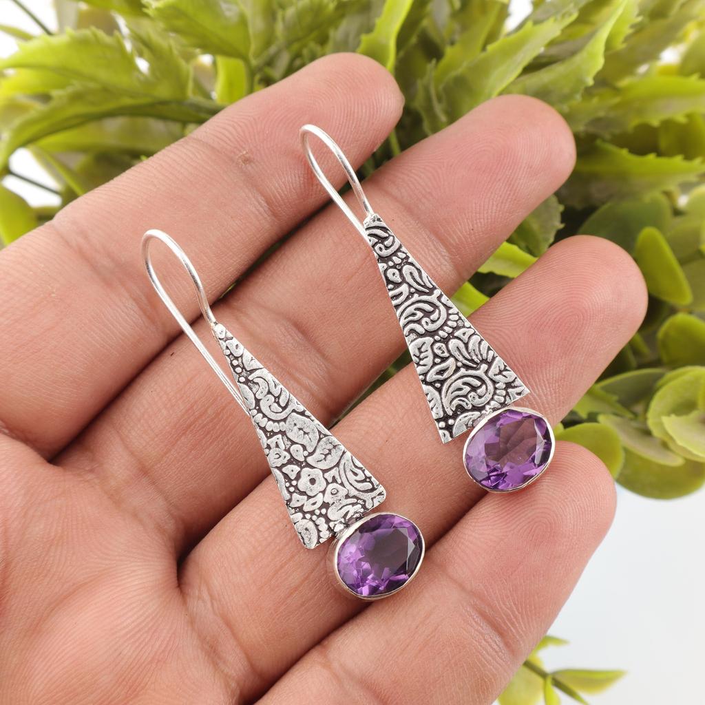 Amethyst Earrings Gemstone Jewelry, 925 Solid Sterling Silver Earrings, Handmade Jewelry Birthstone Earrings , Gift For Her