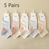 5 Pairs of Women's Thin Boat Socks with Mesh, Breathable, Antibacterial, Sweat-absorbent, Simple and Versatile Boneless Short Socks and Cotton Socks
