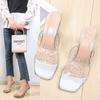 High-heeled Fish-mouth Cool Slippers, New Transparent Rhinestone Slippers, Fashionable Outer Wear, Thick-heeled Fashion Flip-flops.