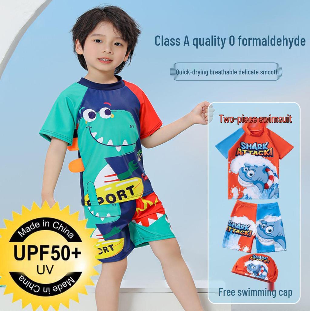 Children's Quick-Dry UPF Sun Protection Swim Set: Boys' Short-Sleeved Swimsuit and Baby Diving/Surfing Suit