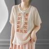Summer New Chinese Cotton and Linen Embroidered Short-sleeved Shirt Women's Half-open Round Neck Solid Color Pullover