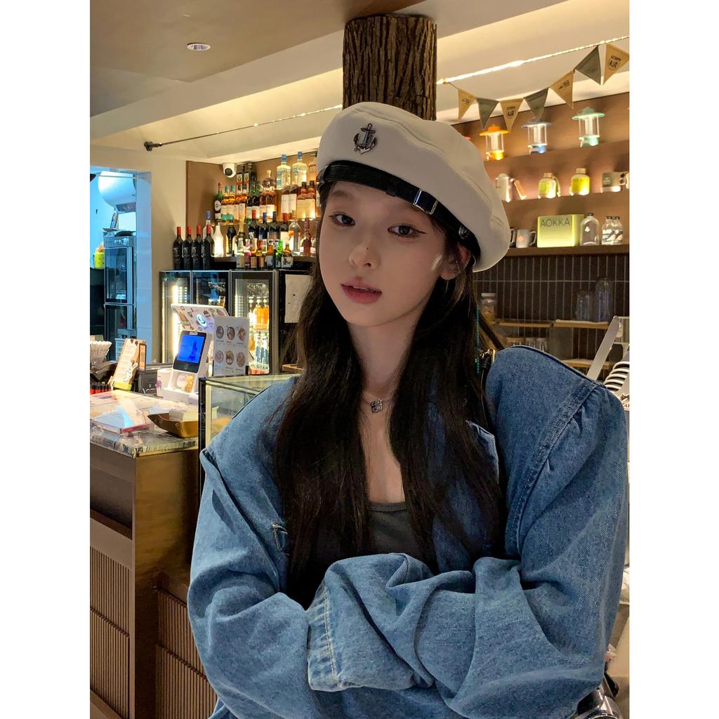 Black Beret Female Autumn and Winter Bud Hat Ins Face Flat Top Painter Hat Ins
