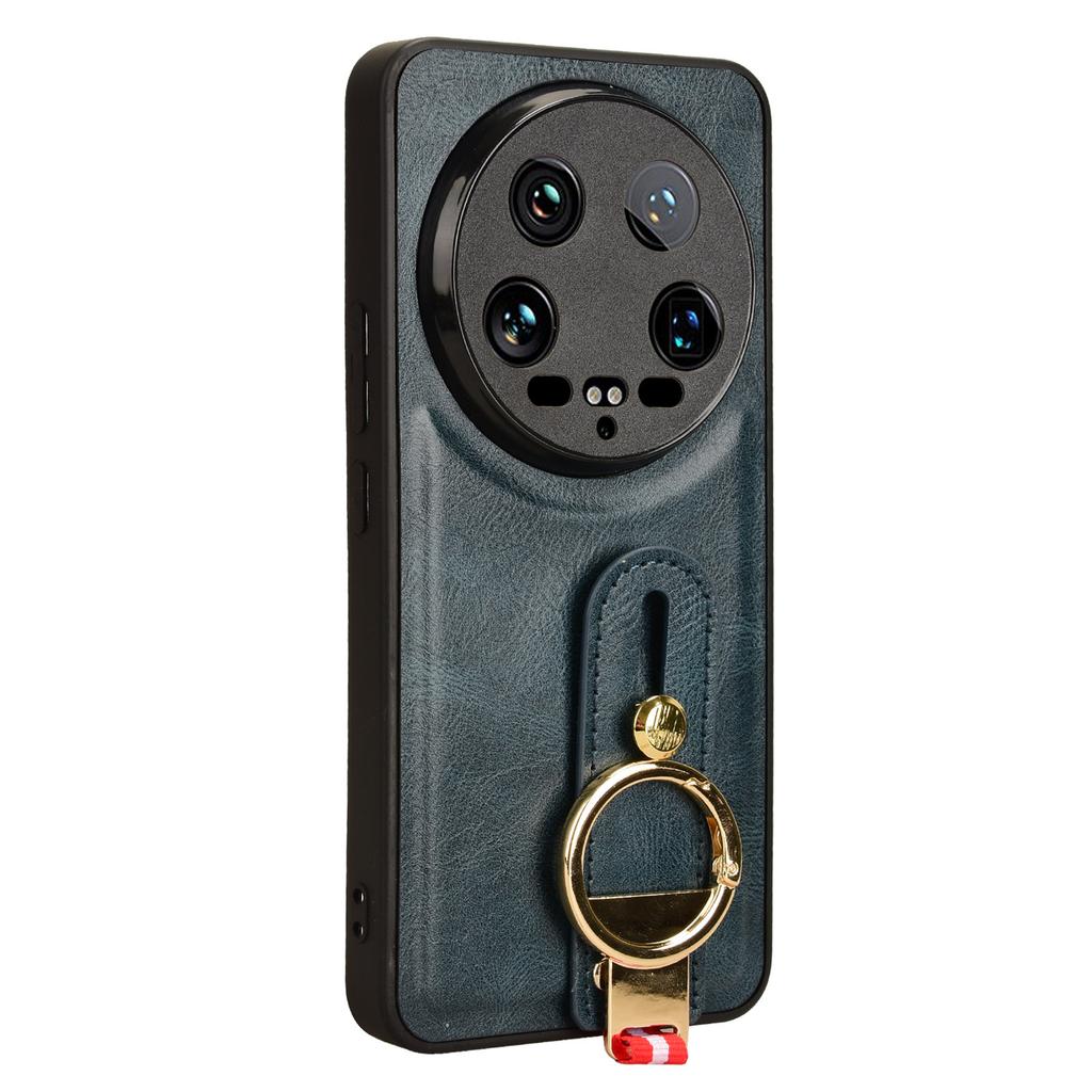 For Xiaomi 14 Ultra Case PU Leather+PC+TPU Wristband Kickstand Drop-proof Phone Cover