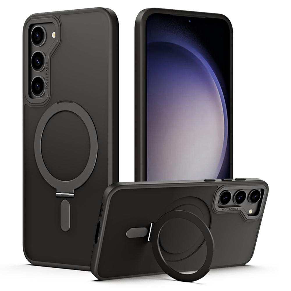For Samsung Galaxy S23 Ring Kickstand Magnetic Phone Case TPU+Acrylic Matte Phone Cover