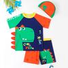Boys' 2025 Dinosaur Print Swimsuit Set - Short-Sleeve Three-Piece Swimwear