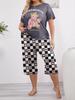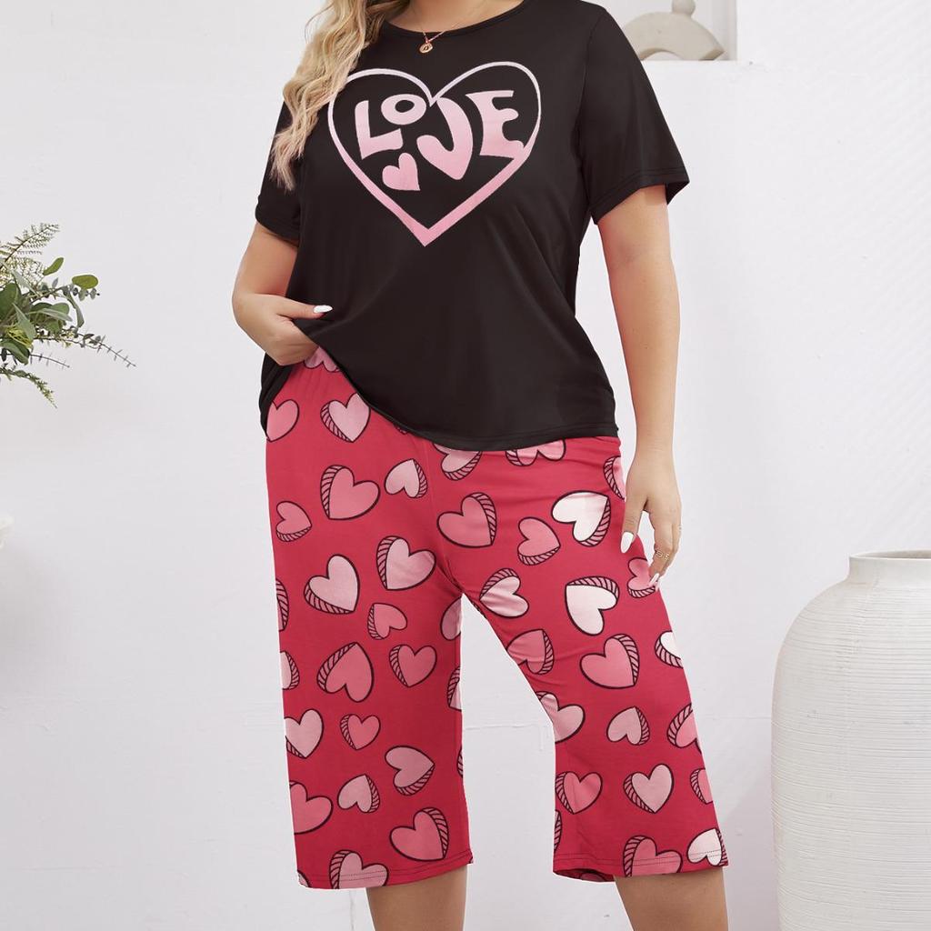 Embrace comfort and style with this plus-size pajama set, featuring a short sleeve top and seven-point pants. Crafted from luxurious milk silk and artificial silk materials, this set offers a smooth, breathable feel against the skin, perfect for warm summer nights. The lightweight fabric drapes elegantly, ensuring optimal relaxation without compromising on chic flair. Ideal for lounging or a good night's sleep, this pajama set combines practicality with a touch of elegance.