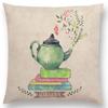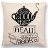 Tea Reading Books Pillow Case Home Decor / Cushion Cover Designer Pillow Cover for Sofa Bedroom Housse De Coussin