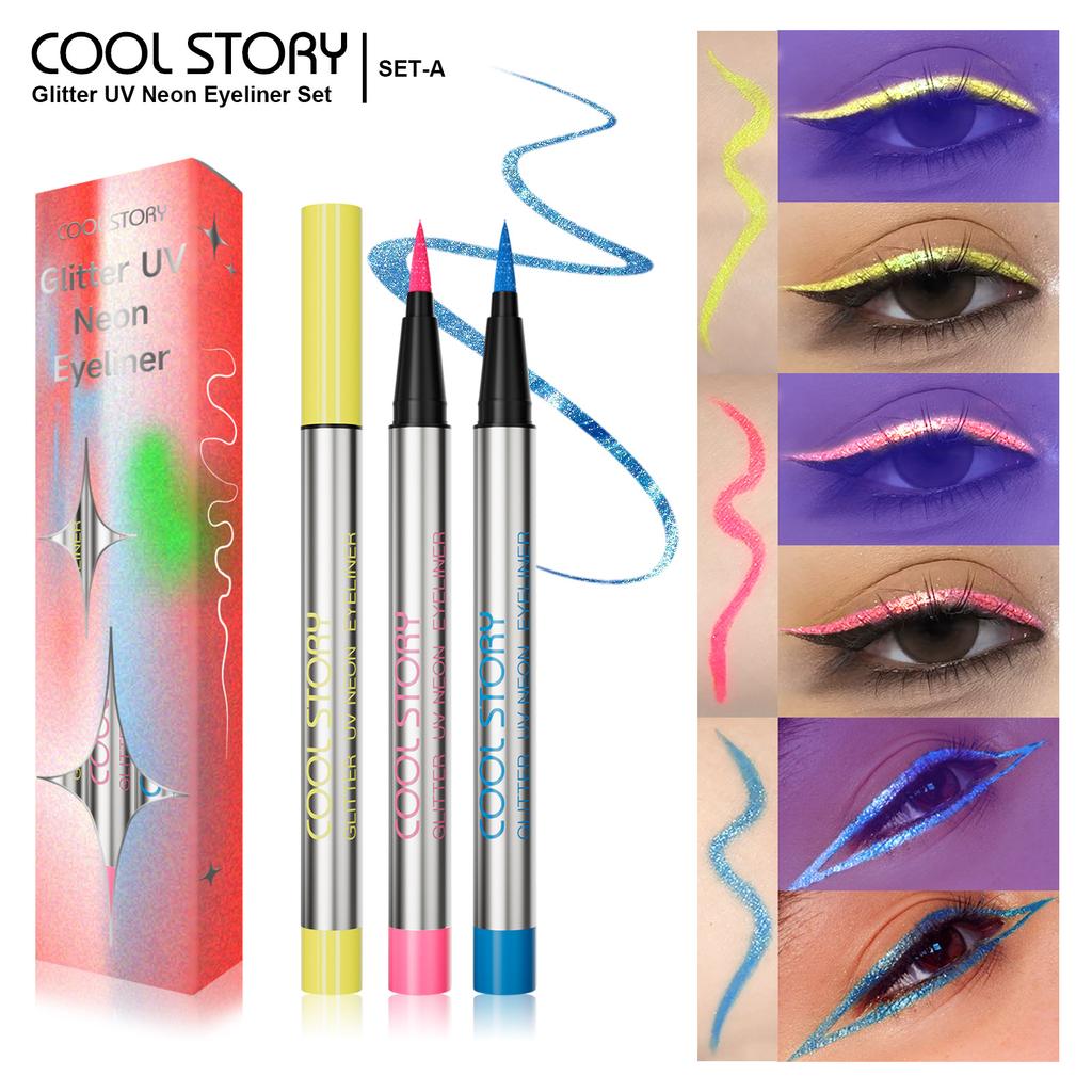 3 Pearlescent Fluorescent Eyeliner Set UV Face Color Lasting Quick Drying Waterproof Sweat Body Painting Suitable for Stage Halloween