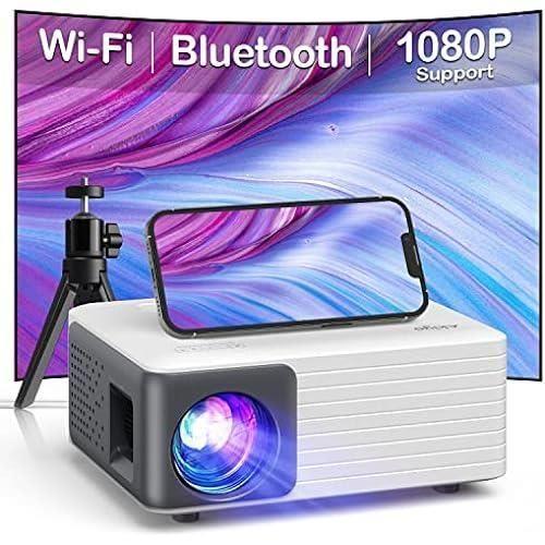 Vidéoprojecteur WiFi Bluetooth, AKIYO Mini Projecteur Portable Avec Trépied, 720P Natif Supportée 1080P Projecteur Video Home Cinéma