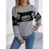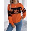 Autumn and Winter Women's Halloween Theme Pumpkin Head Clashing Colours Knitted Long Sleeve Pullover Sweater