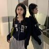 Women's Letter Print Zip-Up Cardigan: New Loose Slimming Long Sleeve Hot Girl Top