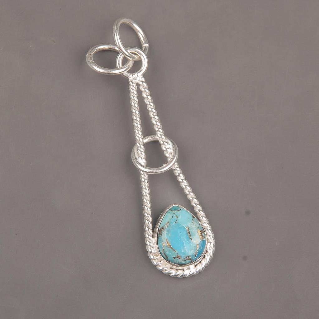 Blue Copper Turquoise Handmade Gemstone Pendant, 925 Solid Sterling Silver Pendant Glorious Jewelry, For Engagement Gift