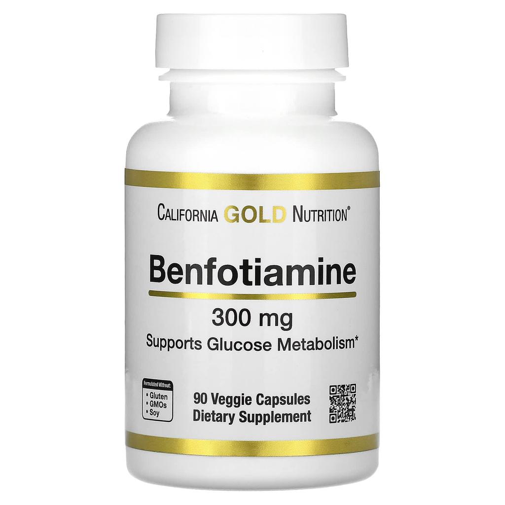 Product Description: California Gold Nutrition® Benfotiamine, 300 mg With BenfoPure® Benfotiamine Suitable for Vegetarians & Vegans Supports Glucose Metabolism* Gluten, GMO & Soy Free 100% Gold Guarantee Derived from thiamine, benfotiamine is a B vitamin essential for energy production. Supplementing benfotiamine into your diet may help support healthy blood sugar levels by helping your body naturally process glucose.* Contains BenfoPure® Benfotiamine BenfoPure® is a brand of benfotiamine designed to provide the nutrients needed to support healthy blood sugar levels.* Unlike standard forms of thiamine which are water soluble, BenfoPure® is fat soluble. Fat soluble thiamine has improved bioavailability and is much more active than standard forms of thiamine. Blood Sugar & Health We all know that consuming too much sugar can lead to weight gain and other, more serious health problems. The World Health Organization (WHO) recommends maintaining healthy blood sugar levels to help you live a healthy life and prevent conditions that can negatively affect your heart, kidneys, brain, and nervous system. California Gold Nutrition Benfotiamine contains BenfoPure® and l-leucine in veggie capsules. Product Description: Provides a 3-month supply if taken as directed. iTested
