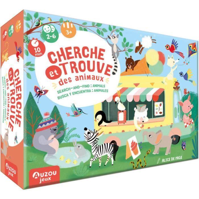 Jeu d'ambiance - auzou - cherche et trouve les animaux - 66 tuiles - 6 planches - 3 ans et plus