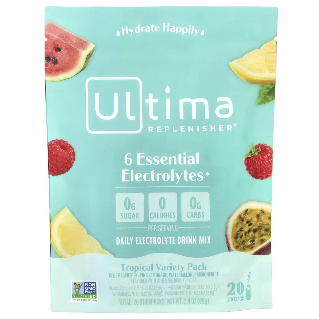 6 Essential Electrolytes, Daily Electrolyte Drink Mix, Tropical Variety Pack, 20 Stick Packs, 69G(2.4Oz)