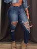 Women's Cross-Border European & American Fashion Ripped Stretch Jeans