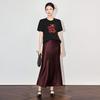 Elevate your casual wardrobe with this unique high-elastic fashion T-shirt, designed for both comfort and style. Expertly crafted from premium combed cotton, this T-shirt ensures a soft and breathable feel. The short sleeves and round neckline provide a classic silhouette, while the standout feature is the exquisite three-dimensional goldfish sequin embroidery. Intricate bead decorations add a touch of elegance to the playful design, making this T-shirt a perfect blend of fun and sophistication for any casual outing.