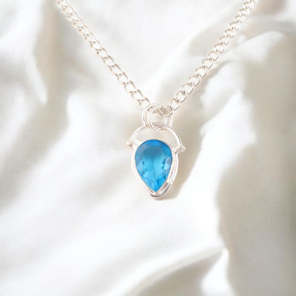 Swiss Blue Topaz Gemstone 925 Sterling Silver Jewelry Handcrafted Pendant 1.01" PP-56-1