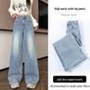Introducing the perfect blend of comfort and style, these light blue high-waisted wide-leg jeans are designed for the modern woman. Crafted from premium denim, they offer a slimming effect while maintaining a draped, loose fit. Ideal for both spring and autumn, these jeans boast a sportive style, making them versatile for various occasions. The high waistline enhances your silhouette, while functional pockets add practicality to your outfit. Embrace effortless chic with these must-have jeans for your seasonal wardrobe.