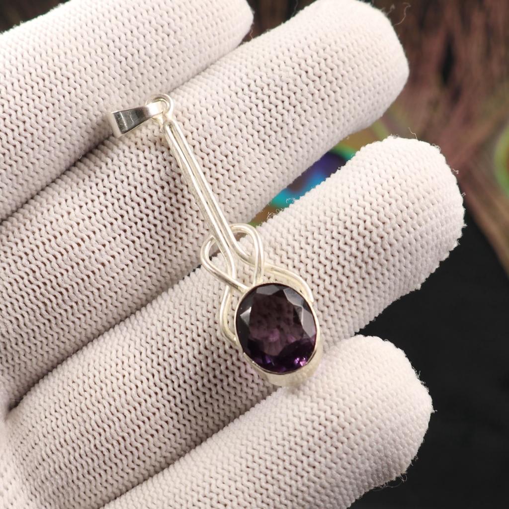 Amethyst Gemstone 925 Sterling Silver Jewelry Handmade Pendant1.79" Gift For Her PP-60-2