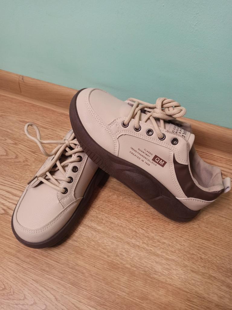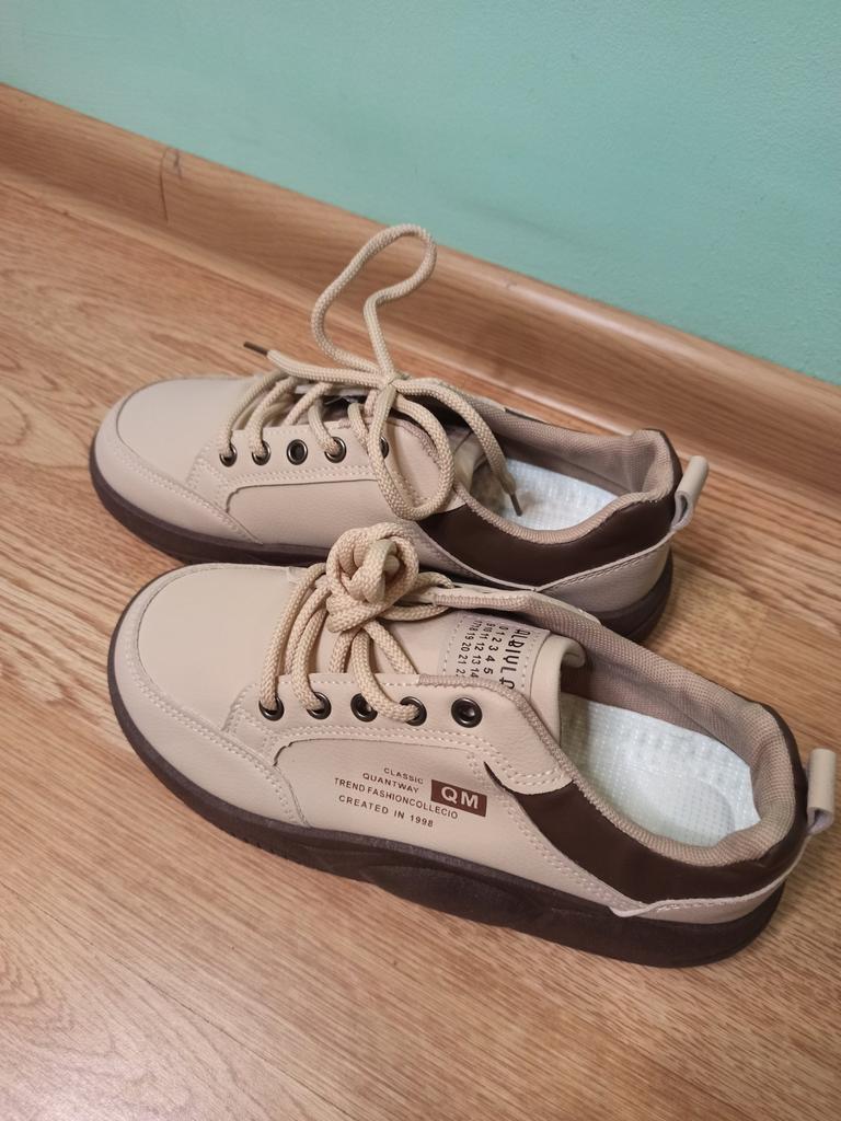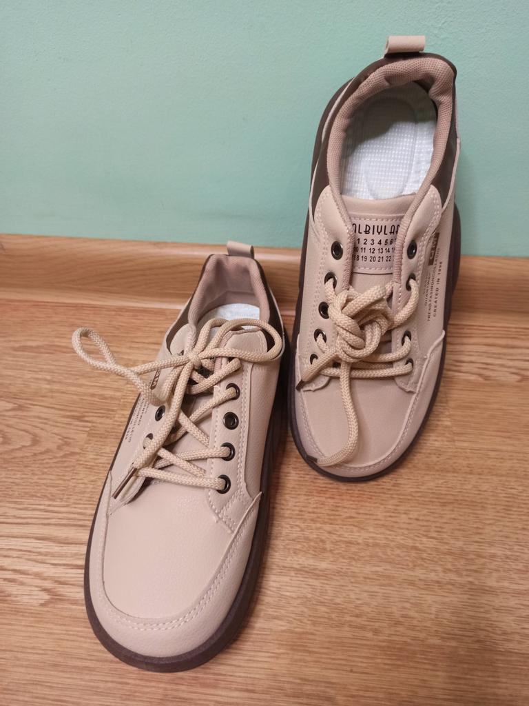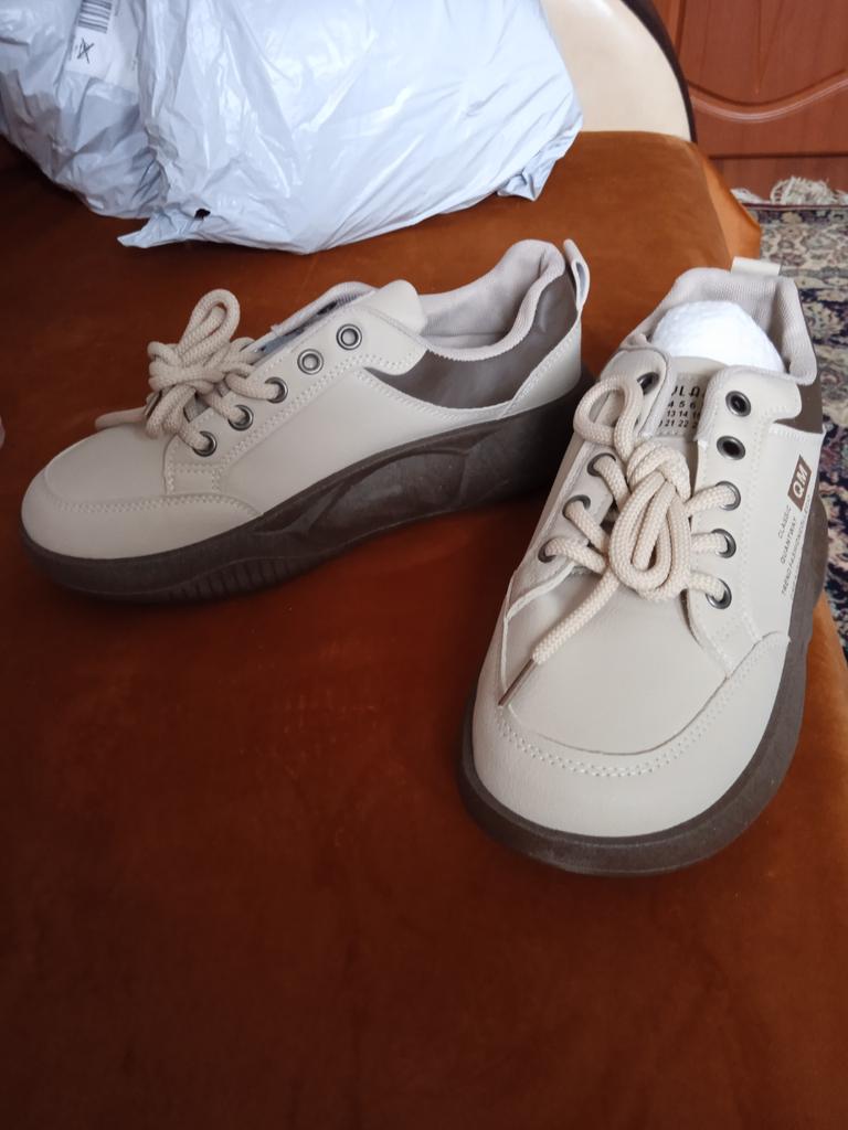 Stylish women's sneakers. There are two colors to choose from. I chose black sneakers. The upper material is good quality artificial leather. Inside there is a comfortable soft insole. Very comfortable and decent sneakers. Size range: from 35 to 40. I chose size 40. Fit perfectly for a 24.5 cm foot on a narrow or medium foot. I highly recommend it from the bottom of my heart.👍👍👍