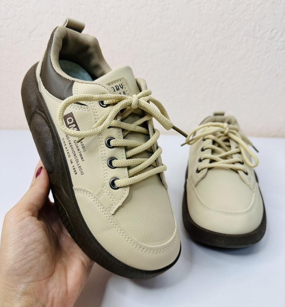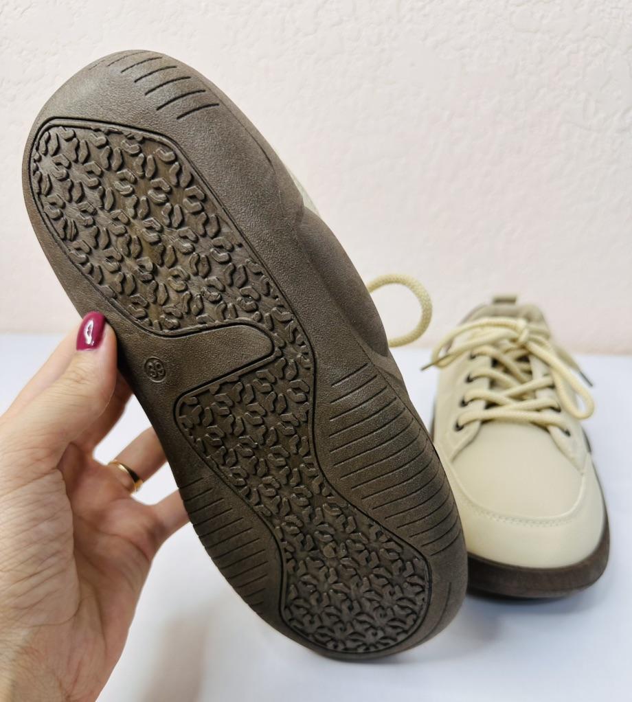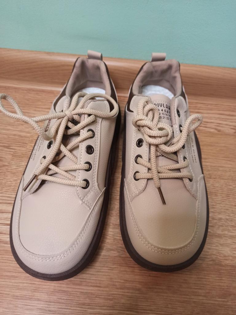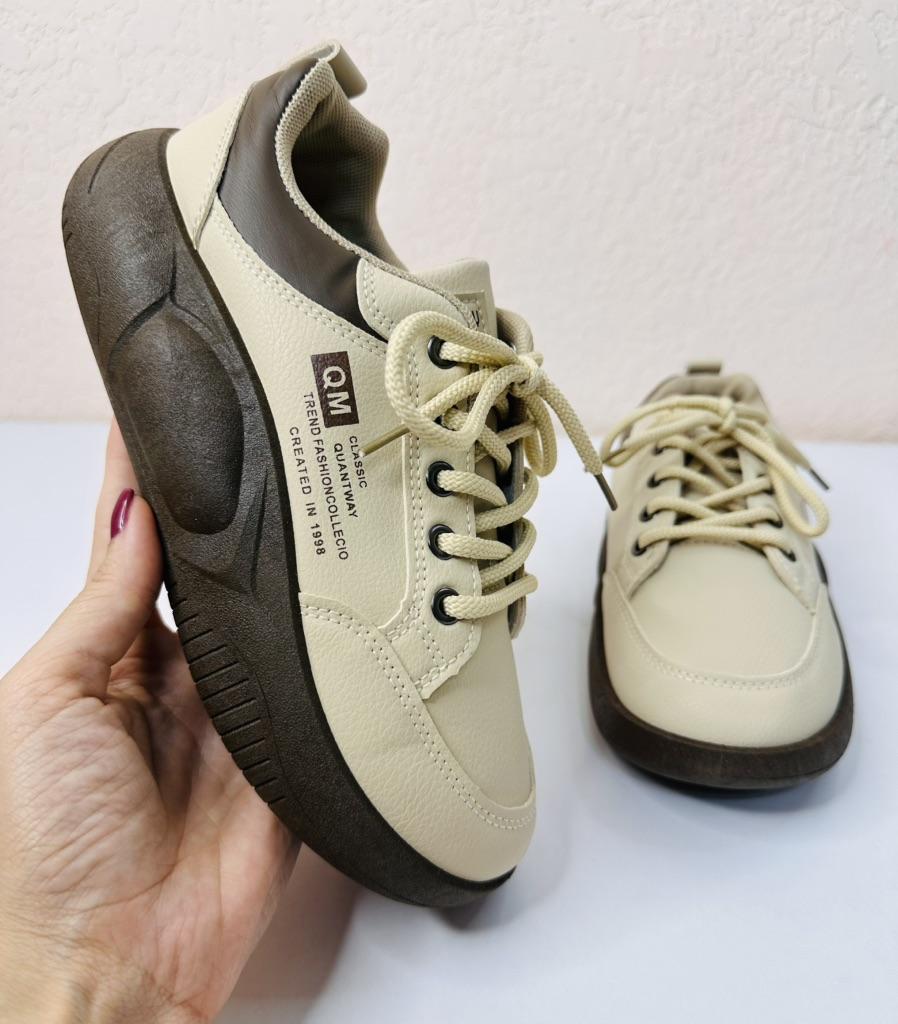 Stylish women's sneakers. There are two colors to choose from. I chose black sneakers. The upper material is good quality artificial leather. Inside there is a comfortable soft insole. Very comfortable and decent sneakers. Size range: from 35 to 40. I chose size 40. Fit perfectly for a 24.5 cm foot on a narrow or medium foot. I highly recommend it from the bottom of my heart.👍👍👍