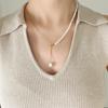 Retro Design Necklace: Titanium Steel with French Freshwater Pearl & Adjustable Tassel Pendant, Non-fading.