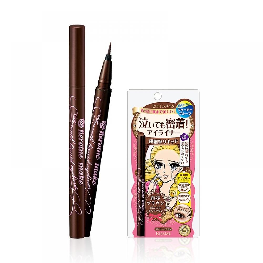 The Heroine Make Smooth Liquid Eyeliner Super Keep Brown boasts powerful, long-lasting fixation that lasts all day. With an ultra-fine brush, you can easily achieve precise lines without worrying about smudging. It contains 4 eye care ingredients to keep your eyelids soft after use and comes in three daily colors: Pink Brown, Exquisite Brown, and Brown Black.