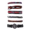 Punk 6-Piece Genuine Leather Multi-Layer Bracelet Set