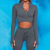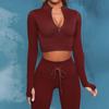Ribbed Seamless Knitted Tracksuit: Crop Top & High Waist Butt Lift Yoga Pants, Long/Short Sleeve Options