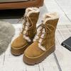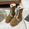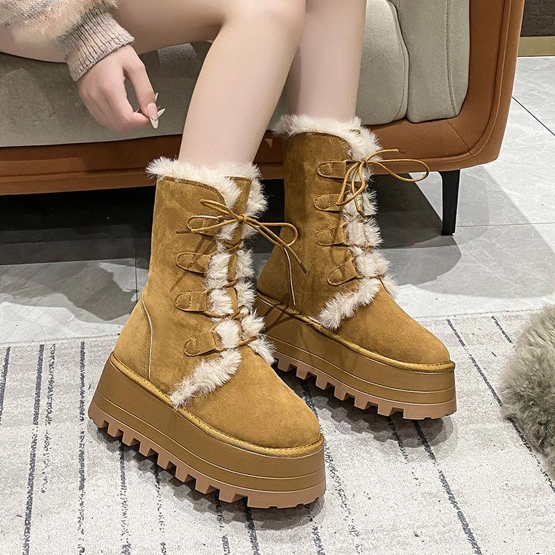 Fashion Thick-soled Lace-up Versatile Tall Plush Snow Boots Women's Winter Warm and Heightening Snow Boots Cotton
